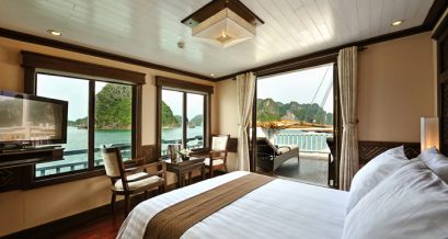 15.45 - 17.00 The Vessels will continuous cruising in Lan Ha Bay and Halong bay passing by Cua Van floating Village, Tien Ong Cave, Trong Cave, Ho dong Tien, Luon cave, Ti Top Island and Coconut Three Island for overnight stay. Enjoy spa at your leisure on-board.